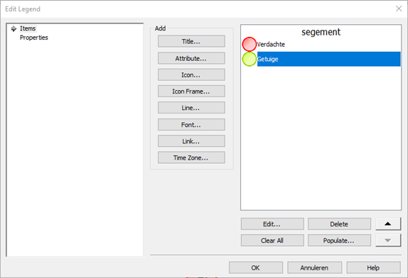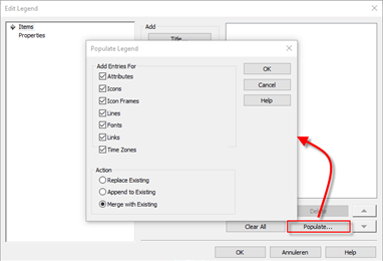 Door op “No” te drukken, komt u terecht in een vervolgvenster. Hier kunt u door op de knop “Populate…” te drukken aangeven welke elementen u in de legenda wilt hebben.