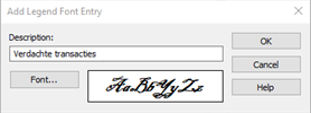 Naast de “Populate” knop is het ook mogelijk elementen aan de legenda toe te voegen door op één van de knoppen in het midden van het venster te drukken. Zo kunt u bijvoorbeeld met de “Font…” knop aangeven wat een specifiek lettertype betekent.