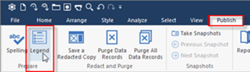 Een legenda in i2 Analyst’s Notebook aanmaken kunt u doen door in de tab “Publish” op de knop “Legend” te drukken.