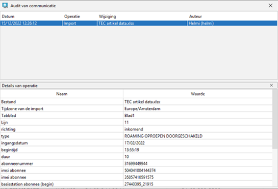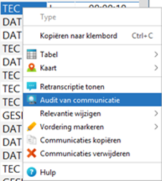 Voor het uitvoeren van een volledige analyse is het van belang om te achterhalen welke communicatie is geclassificeerd als TEC. U heeft de mogelijkheid om te achterhalen wat de originele waarde in het exportbestand van de provider is geweest. Hiervoor kunt u de audit functie in Mercure gebruiken. U gaat als volgt te werk: