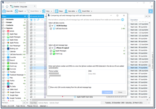 Binnen Oxygen Forensic® Detective is vanaf heden een nieuwe analyse tool beschikbaar die het mogelijk maakt om bel- en berichtlogs geëxtraheerd van een apparaat te vergelijken met Call Data Records (CDR) verstrekt door mobiele service providers. Een tool die met name van toegevoegde waarde is wanneer telefoongesprekken of berichten handmatig zijn verwijderd van een apparaat. Door de gegevens te vergelijken kunt u ontbrekende data in kaart brengen en een completer beeld schetsen.