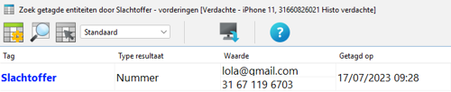Uiteraard is het van belang dat de communicatie die anders dan via telefonie plaats heeft gevonden ook inzichtelijk wordt gemaakt. Door te zoeken op tags is het mogelijk om binnen de vorderingen te zoeken op tags van de tegenpartij. Hierdoor kan er in de histo en in de extractie van de verdachte gezocht worden op de blauwe tag van het slachtoffer. Dit doet u als volgt:
