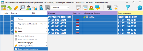 Selecteer vervolgens het volledige overzicht en selecteer ‘Communicaties kopiëren’ en kopieer de gegevens naar de lege ‘Overige communicatie’ lijst.