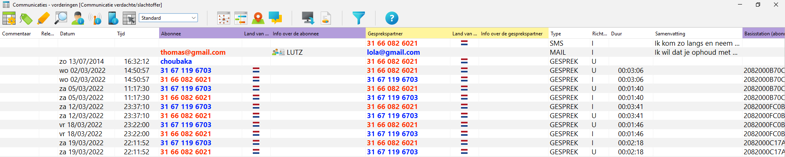 Voer vervolgens hetzelfde uit met de communicatie vanuit het slachtoffer met de verdachte. In de ‘Overige communicatie’ lijst is er nu een chronologische volgorde van de communicatie zichtbaar, inclusief eventueel inhoud van gesprekken.