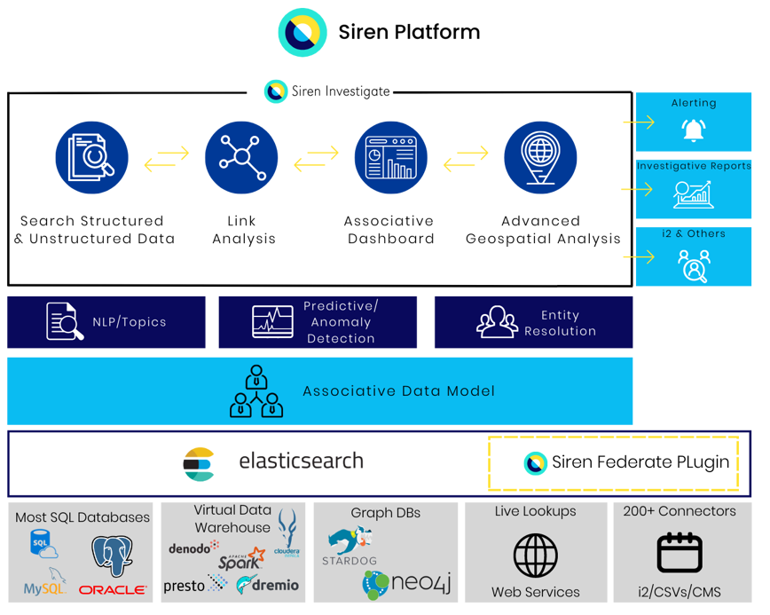 Het All-in-one Investigation Platform van Siren is een platform waarin alle benodigde analyse en onderzoek tools voor rechercheurs, fraude analisten, cyber security specialisten en ieder ander die zich bezighoudt met het opsporen van criminaliteit aanwezig zijn. De drie kernwoorden die de software omschrijven zijn: analyseer, onderzoek en alarmeer.